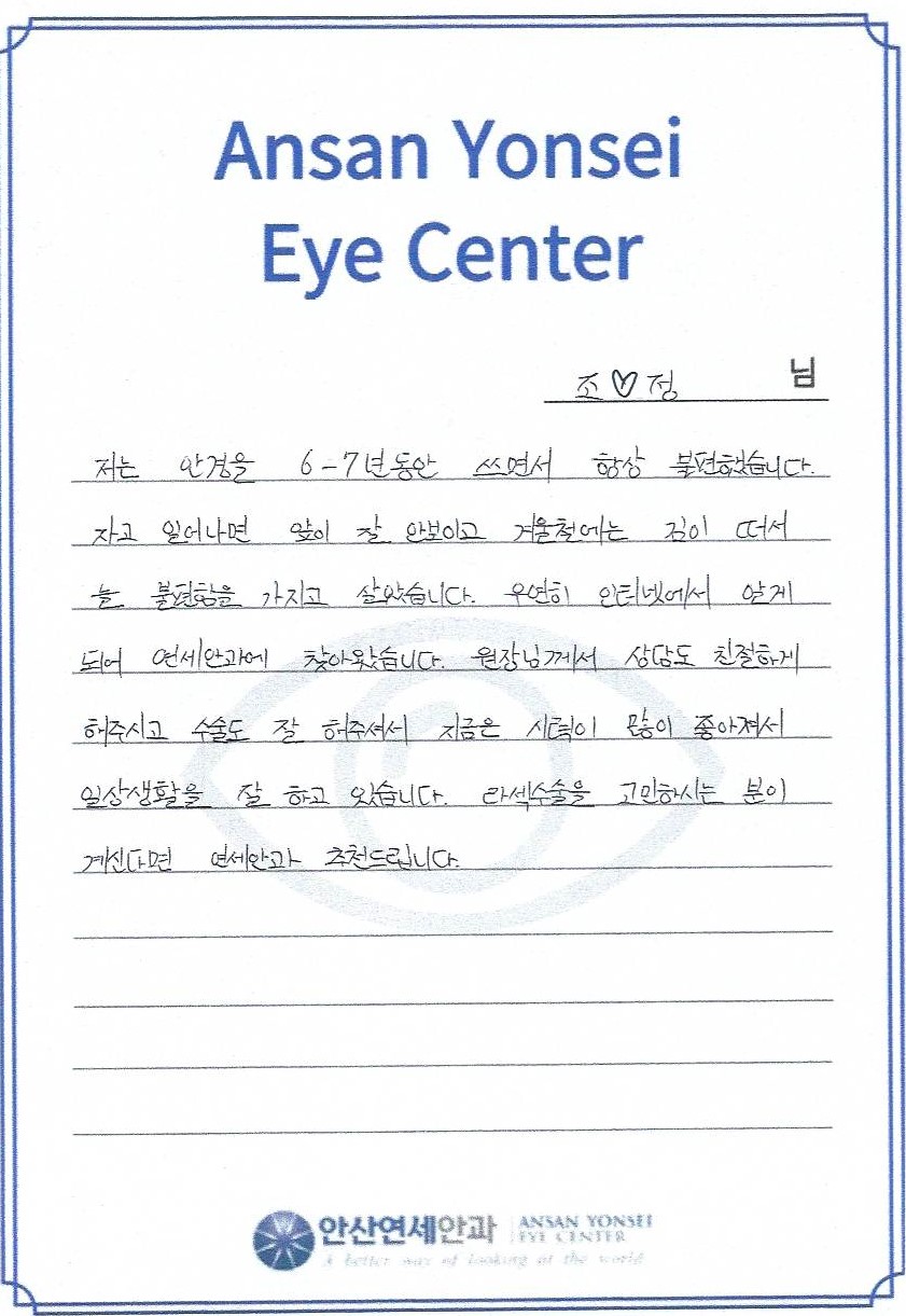 우연히 인터넷에서 알게되어 연세안과에 찾아왔습니다.