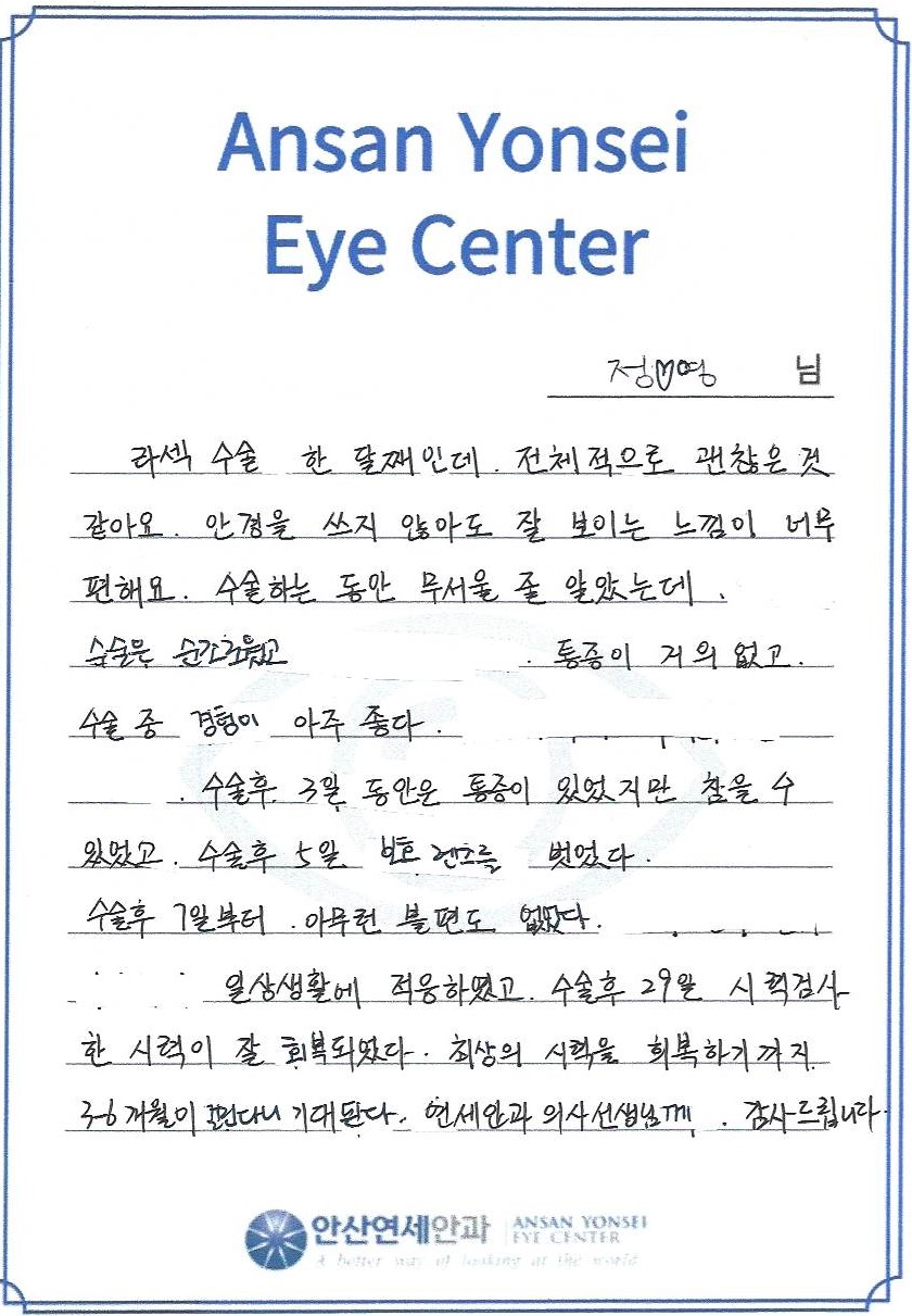 연세안과 의사선생님께 감사드립니다.