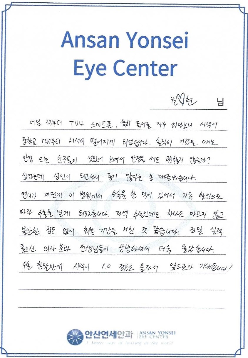 수술 한달 안에 시력이 1.0 정도로 올라서 앞으로가 기대됩니다!