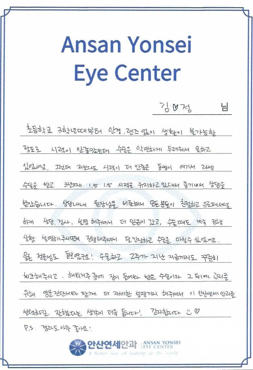 더 자세한 설명까지 해주셔서 이 안산연세안과를 선택하길 잘했다는 생각이 더욱 듭니다! 감사합니다^_^♡